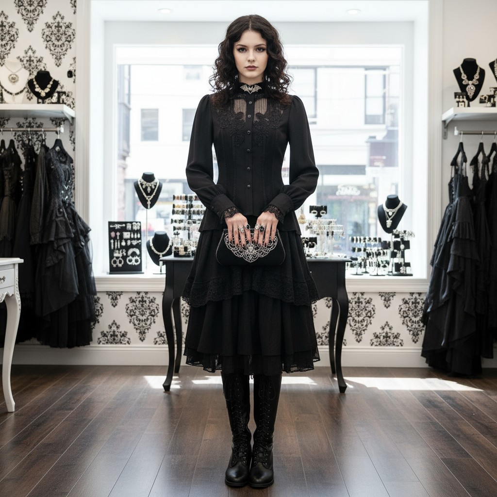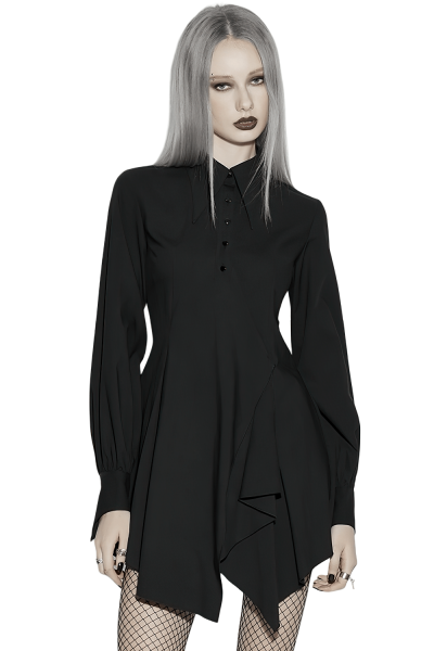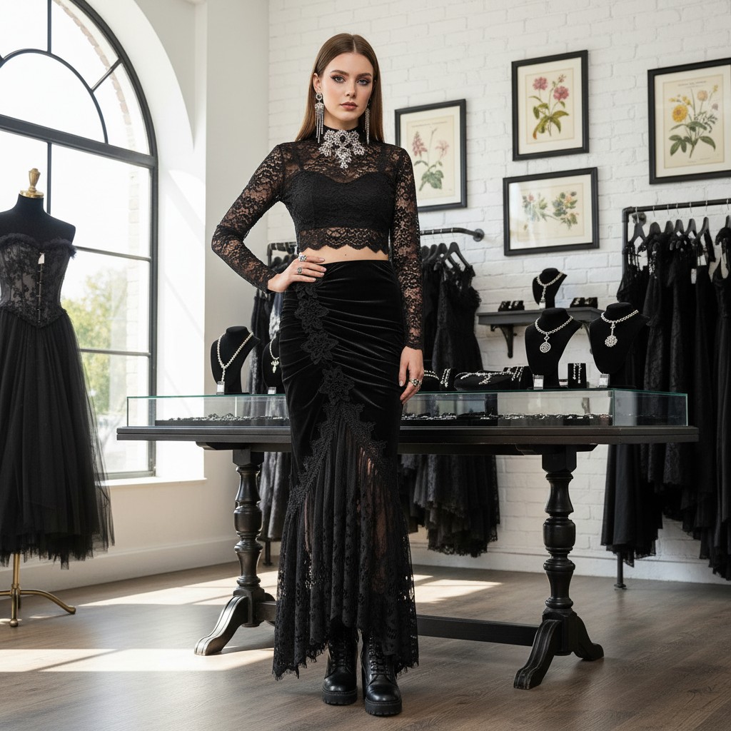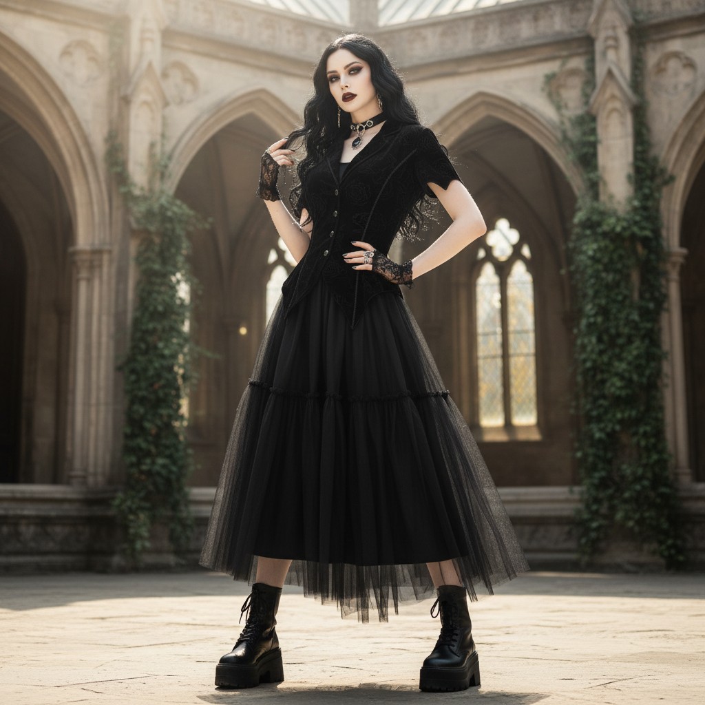 Halter deep V with metal buckles, tailored waist to define curves, and layered uneven hem that sways with movement—blending dark utility and Gothic elegance, perfect for parties and daily dark looks.